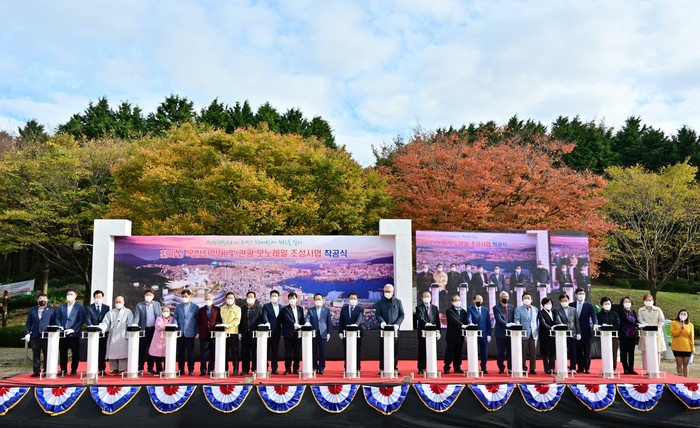 국제우호교류도시인 일본 사세보시와 러시아 하바롭스크시의 시장도 영상으로 축하메시지를 전했다. 또 착공식에 앞서 산림훼손 최소화를 위해 모노레일 궤도구간 내 벌목대상 나무 중 일부를 옮겨 심는 이식목 식수행사와 무사고를 염원하는 안전기원제도 가졌다.