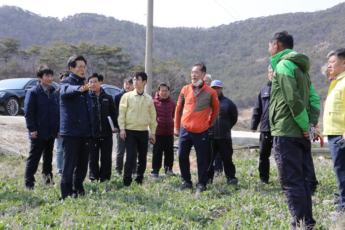 ▲유기상 고창군수가 유채꽃 단지 현장을 둘러보고 있다.(고창군 제공) |
