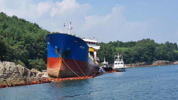 [로컬세계 맹화찬 기자]창원해경은 지난 3일 제9호 태풍 ‘마이삭’의 영향으로 고성군 동해면 매정마을 인근 해안가에 좌주됐던 R호(화물선, 1,502톤)의 연료유 이적 작업을 완료했다고 4일 밝혔다.