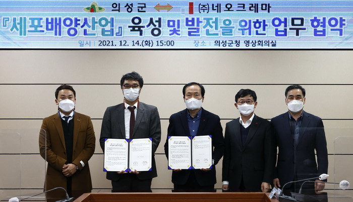 [로컬세계 박상진 기자]경북 의성군은 14일 군청 영상회의실에서 ㈜네오크레마와 세포배양산업 육성을 위한 업무협약(MOU)을 체결했다.