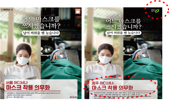 서울시는 먼저 최근 시민에게 화제를 불러 일으키고 있는 ‘마스크착용 의무화 캠페인 이미지’를 전국의 지방자치단체와 공공기관.일반시민에 제공하여 폭넒은 확산을 지원한다.