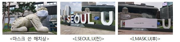 캠페인 확산을 위해 서울시 공식 캐릭터와 브랜드인 해치와 I.SEOUL.U 도 한 몫을 하게 된다. 서소문청사에 위치한 해치상은 마스크를 착용하고 시민들을 맞이하고 있으며 서울광장의 I.SEOUL.U 조형물은 I.MASK.U로 변신하여 역시 마스크를 쓴 모습으로 시민에게 색다른 관심을 끌고 있다.