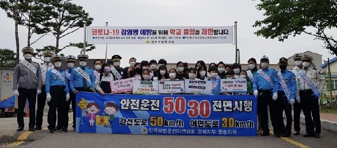 [로컬세계 이창재 기자]청송경찰서(서장 이정섭)는 24일 오전 8시 진보초등학교 정문에서 청송모범운전자회, 청송녹색어머니회, 진보초등학교 관계자 등 40명이 참석한 가운데 어린이 보호구역 교통안전 문화 확산을 위한 등굣길 교통사고 예방 캠페인을 실시했다.