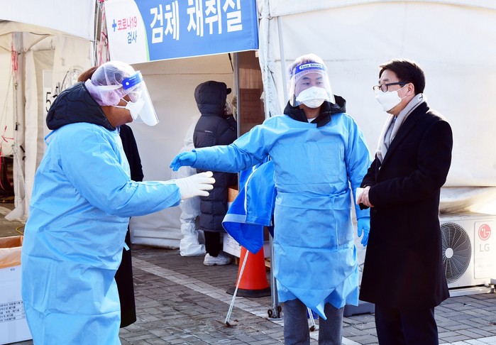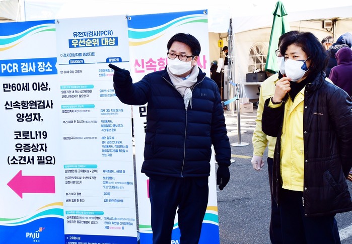 이날 방문은, 연휴기간에도 철저한 코로나19 방역상황이 유지될 수 있도록 방역 최일선인 금촌, 문산, 운정의 선별검사소 근무자를 격려하기 위해 이뤄졌다. 이어, 파주소방서와 일선 금촌지구대를 방문해 명절기간에도 시민의 안전을 지키는 근무자들의 노고를 위로했다.