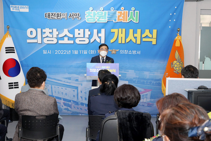[로컬세계 권인진 기자]경남 창원시(시장 허성무)는 11일 오후 2시 의창구 중동 일원에서 창원시 새로운 시작, 특례시 출범과 발맞추어 의창소방서 개서식을 개최했다.