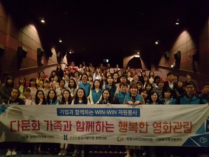 [로컬세계 한용대 기자]경남 창원시와 기업이 함께하는 WIN-WIN자원봉사 협약기업인 건강보험심사평가원 창원지원은 지난 23일 마산회원구 롯데시네마 마산터미널점에서 ‘다 문화가족과 함께하는 행복한 영화관람’ 행사를 가졌다.