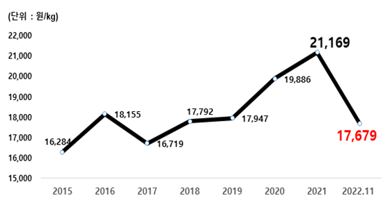 ▲ 한우 도매가격 추이. |