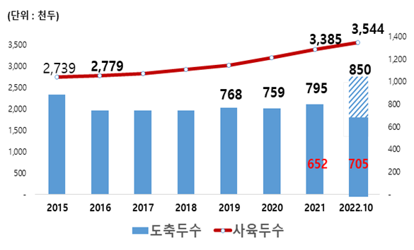 ▲ 한우 사육두수, 도축두수. |
