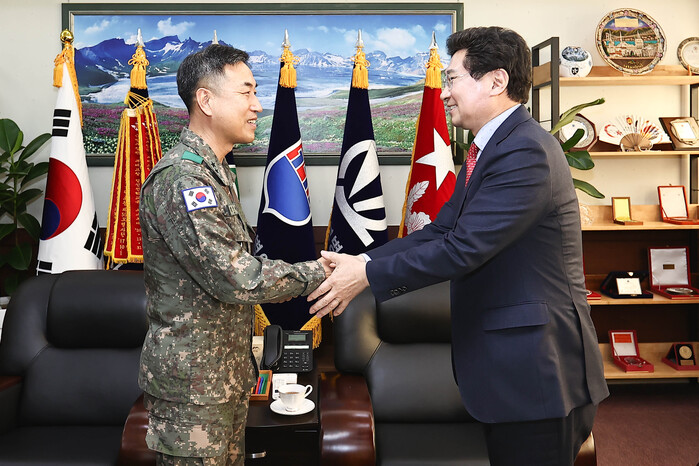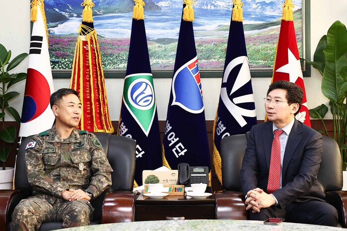 이 시장은 지상작전사령부를 방문해 전동진 지상작전사령관과 면담했다.