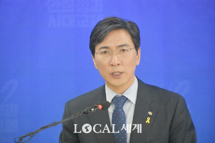 이날 기자간담회에는 조승래 의원(유성갑), 박병철, 송대윤 시의원, 이선용 시당 대변인 등 100여 명이 참석했다.