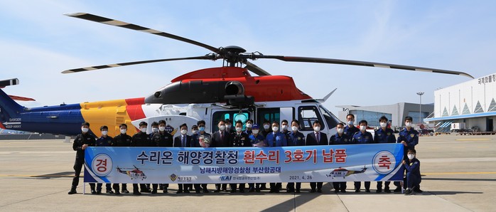 [로컬세계 맹화찬 기자]남해지방해양경찰청(청장 서승진)은 26일 김해국제공항에 위치한 해양경찰 부산항공대에서 국산 최고성능의 중형헬기인 흰수리 3호기 인수행사를 개최했다.