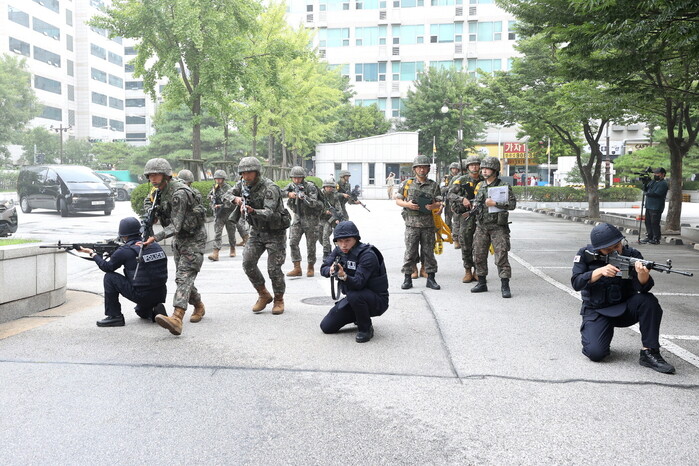 [로컬세계 = 이영원 기자]경기 고양특례시(시장 이동환)가 24일 9사단, 일산소방서, 일산동부경찰서, 한국예탁결제원 등 관내 유관기관과 함께 국가중요시설 테러대응 실제훈련을 한국예탁결제원 일산센터에서 실시했다.