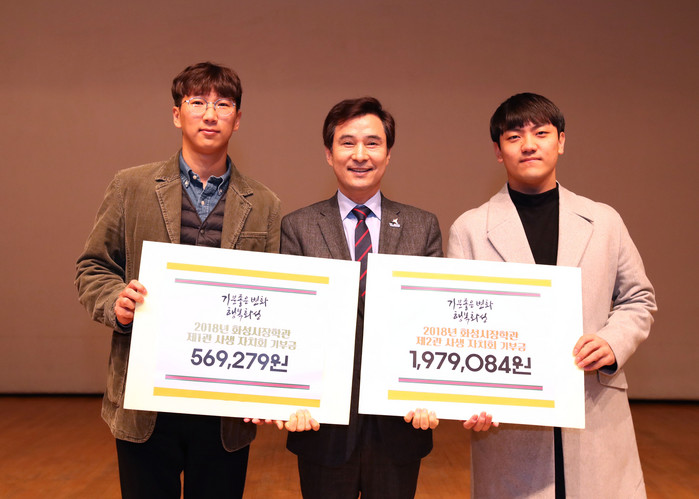 | ▲화성시장학관 사생 자치회 기부금 전달식 기념 사진. |