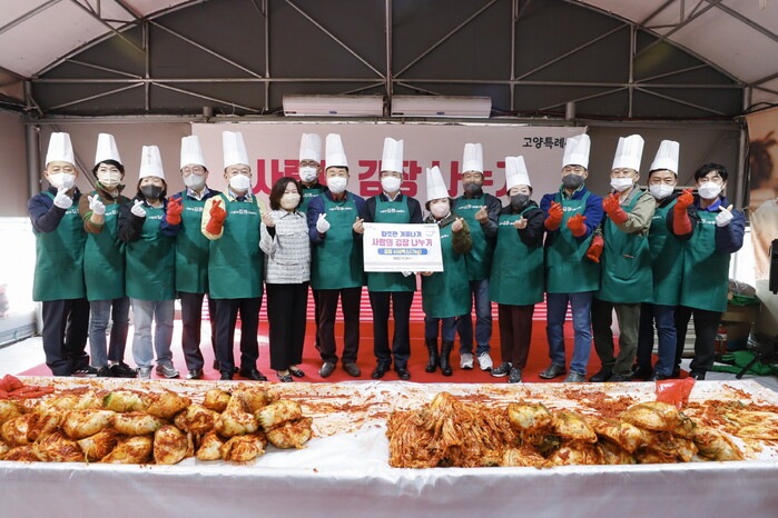 이날 담근 사랑의 김장 김치는 고양시 사회복지협의회에 기탁해 9개 복지관을 통해 관내 저소득층 노인과 다문화가정에 지원됐다.