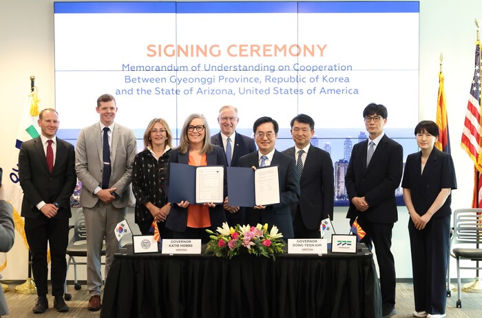 김동연 지사는 현지 시각 14일 오후 애리조나주 피닉스시에 위치한 애리조나통상공사에서 케이티 홉스(Katie Hobbs) 주지사를 만나 우호협력 협약을 체결했다. 이로써 애리조나주는 텍사스, 미시간, 캘리포니아에 이어 경기도와 우호협력 관계를 맺은 미국 내 네 번째 주가 됐다.