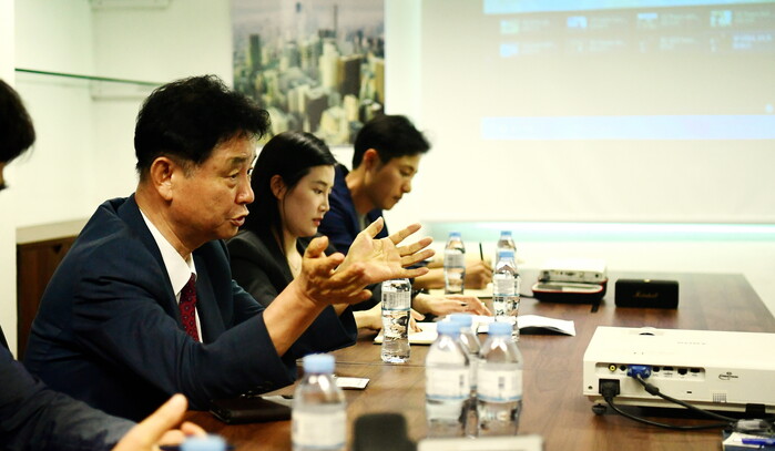 ▲최문순 군수가 해외 관광객 유치를 위해 현지 여행사를 방문해 홍보활동을 펴고 있다. |