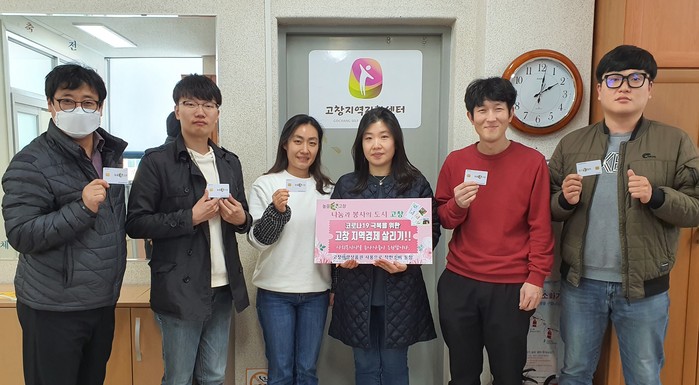[로컬세계 김경락 기자]전북 고창군 사회복지시설 종사자들이 코로나19로 침체된 지역경제를 살리기 위해 지역화폐이용을 통한 ‘착한소비’ 운동에 동참하고자 뜻을 모았다.