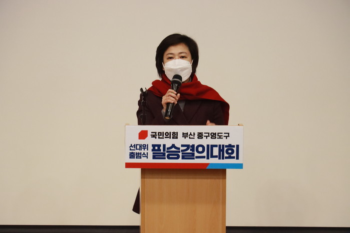 코로나19 방역 수칙을 철저히 준수한 가운데 진행된 이번 행사는 국민의힘 황보승희 의원(부산 중구영도구), 김무성 전 의원, 김은숙 전 중구청장, 어윤태 전 영도구청장 등 150여 명이 참석한 가운데 제20대 대통령선거에서의 필승 의지를 다졌다.