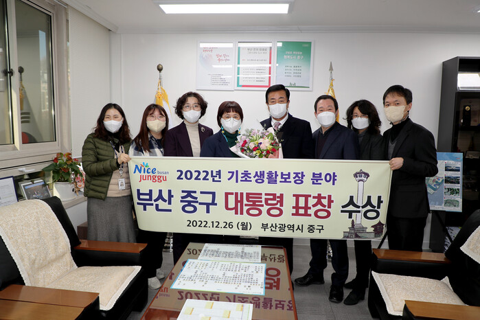 [로컬세계 부산=맹화찬 기자]부산시 중구(중구청장 최진봉)는 보건복지부가 시행한 ‘2022년 기초생활보장분야 평가’에서 전국 243개 지방자치단체 중 최우수로 선정돼 대통령 기관 표창을 수상했다고 27일 밝혔다.