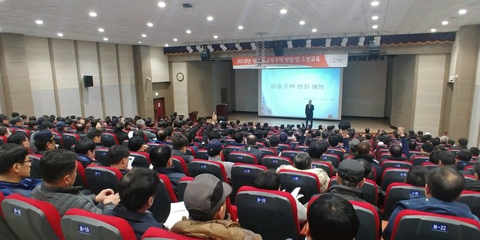 [로컬세계 고용주 기자]경기 화성시는 22일 공동주택 경비책임자, 안전관리책임자 350명을 대상으로 ‘2019년 상반기 공동주택 방범 및 소방교육’을 실시했다고 밝혔다.