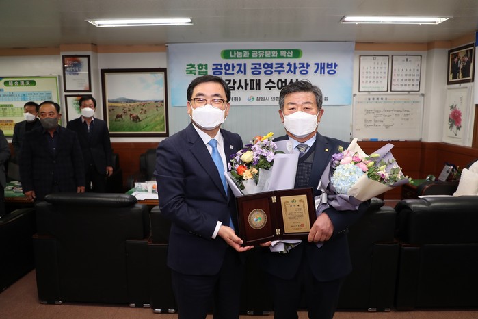 이날 수여식에서는 허성무 창원시장, 창원시축산농협 조합장 및 임직원, 의창구청장, 창원시농업기술센터소장 등이 참석했으며, 조합 공한지 2,333m²의 공간을 주차장으로 사용할 수 있도록 상시 개방해 약 70면에 상당하는 주차공간을 확보함으로써 주변 주택가와 중동, 서상동 일원 상가의 심각한 주차난에 숨통이 트이게 하였고 골목상권 활성화에도 기여한 공로가 인정된 것이다.