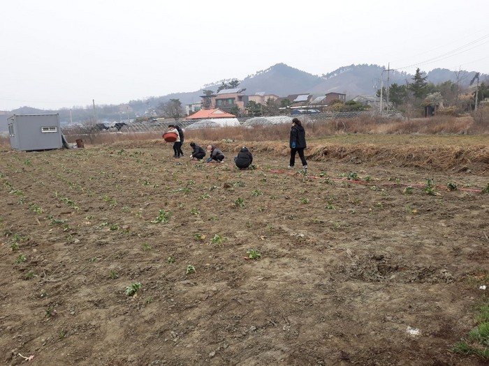 ▲군산시 회현면이 지난 18~20일 공한지 466㎡에 꽃밭조성을 위한 유채꽃씨를 파종했다.(군산시 제공) |