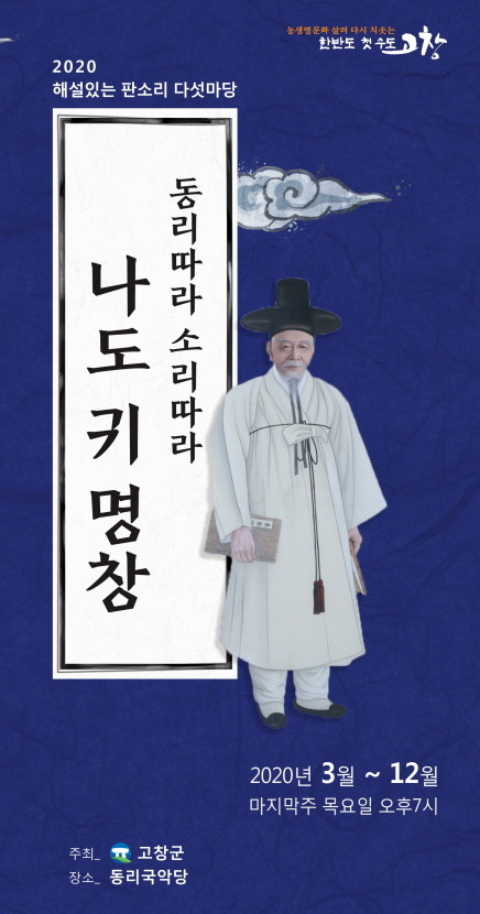 고창 동리국악당에선 해설이 있는 판소리 다섯마당 ‘동리따라 소리따라 나도 귀 명창’ 공연을 오는 3월부터 12월까지 10회에 걸쳐 마지막주 목요일 오후 7시에 연다.