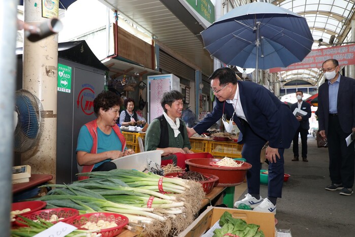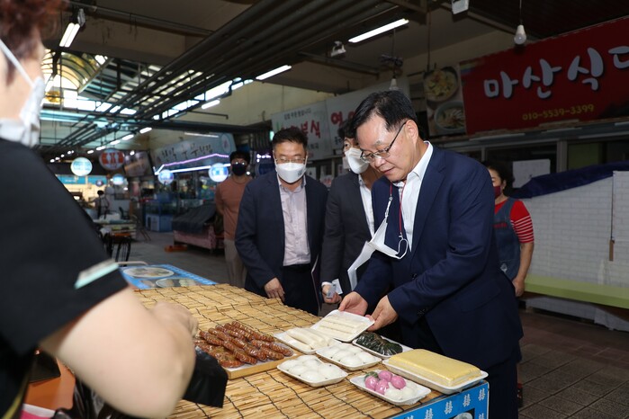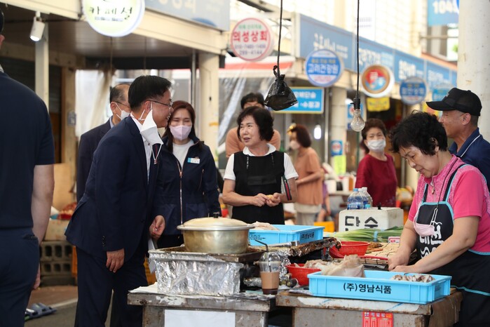 ▲홍남표 창원특례시장, 추석 앞두고 전통시장 찾아 소통 행정 (동마산시장)/ 창원시 제공 |