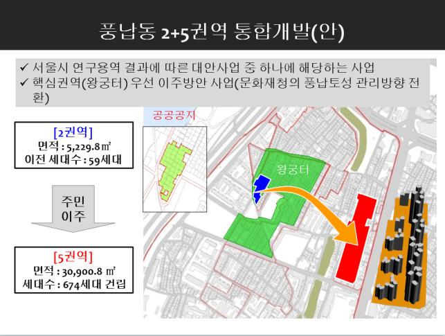 때문에 “서울시가 2014년 10월 현재기준으로 풍납토성 내부 토지 중 약 400필지(약 1,800억원)를 매입하였는데 풍납토성 내부가 한성백제 왕궁터로 유력시됨에 따라 우선 매입대상지인 2권역을 집중 매입해야 함에도 상대적으로 중요하지 않은 3권역까지 사적으로 지정하여 뜨문뜨문 매입하다보니 정작 발굴은 하지도 못하고 예산만 낭비한 채 문화재가 지역개발을 저해하는 알박기가 되고 있다”고 꼬집었다.