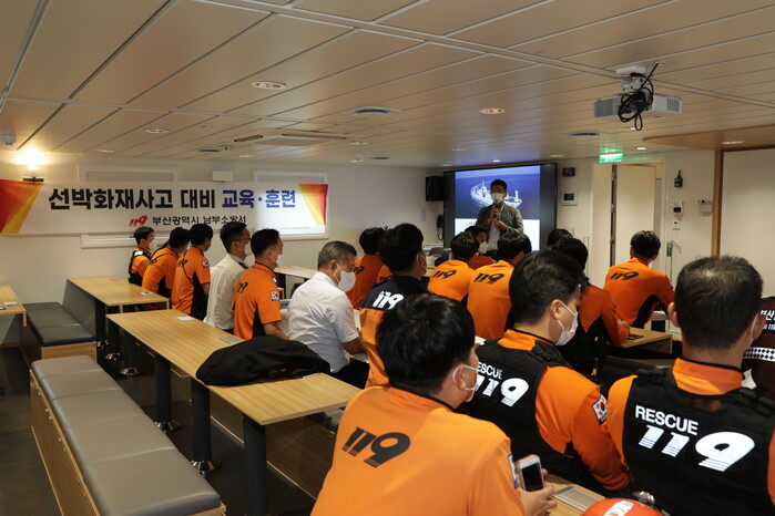 ▲ 백경호 류경진 선장의 이론교육. 남부소방서 제공 |