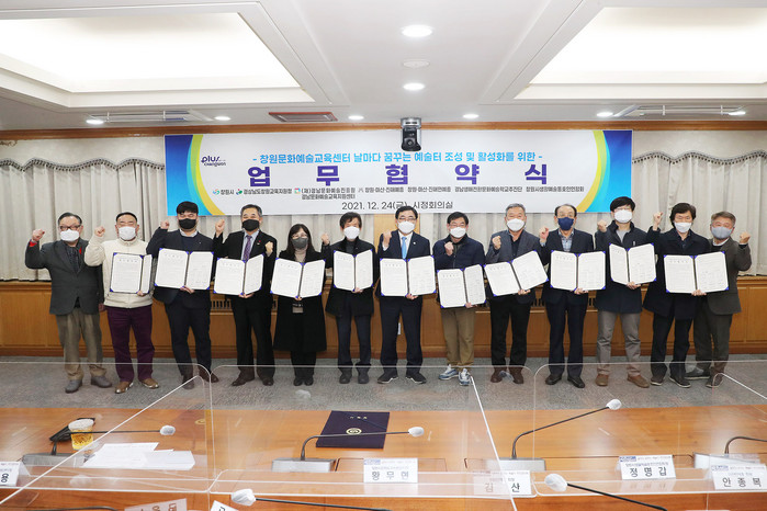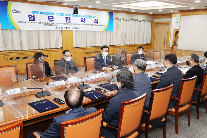 [로컬세계 권인진 기자]경남 창원시는 24일 오후 5시 시정회의실에서 문화도시 기반 조성 및 생애 주기별 문화예술교육 활성화를 위해 창원문화예술교육센터 조성 및 운영을 위한 민관 추진협의체를 구성하고 업무 협약을 체결했다.