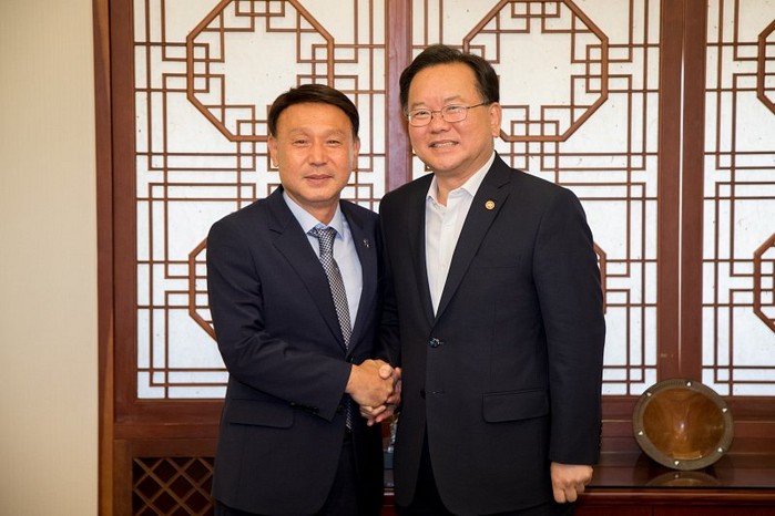 ▲왼쪽부터 강임준 군산시장, 김부겸 행안부장관.(군산시 제공) |