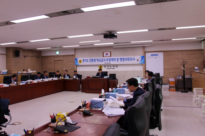 경기도 친환경학교급식 부정계약 등 행정사무조사 특별위원회는 친환경학교급식 사업 관련 각종 의혹의 진상규명과 발전방안 마련을 위해 지난해 12월 14일 구성돼 올해 6월 25일까지 활동할 계획이며, 5월 14일 3차 증인‧참고인 신문을 진행할 예정이다.