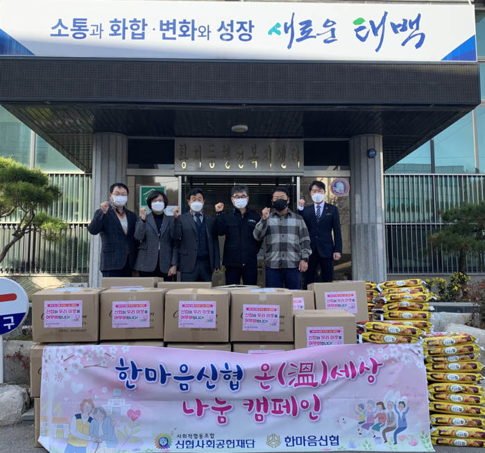 [로컬세계 박상진 기자]강원 태백시 한마음신협(이사장 임용훈)은 16일 황지동 행정복지센터를 방문해 온세상 나눔 캠페인을 실시했다고 밝혔다.