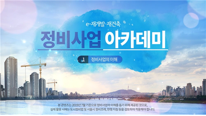 [로컬세계 이명호 기자]서울시가 코로나19에도 집에서 안심하고 수강할 수 있도록 ‘정비사업 아카데미’를 PC와 모바일로 24시간 무료로 서비스한다고 16일 밝혔다.