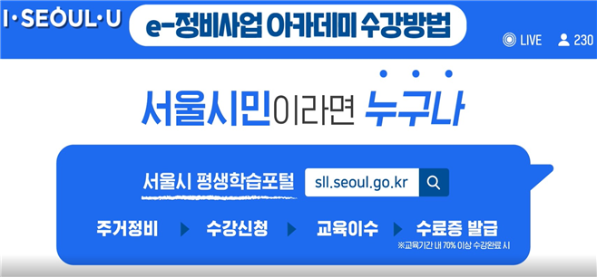 ▲e-정비사업 아카데미 수강방법 안내(서울시 유투브 홍보영상 중)/서울시 제공 |