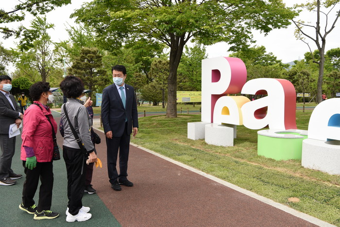 ‘평화의 문’, ‘오륙도’ 및 ‘행복한 꽃’ 등 총 9점의 작품들은 도심 속 휴식 공간인 평화공원에 설치되어 주민들의 쉼터 및 인생사진을 찍을 수 있는 포토존으로 주민들의 사랑을 받을 것으로 기대된다.
