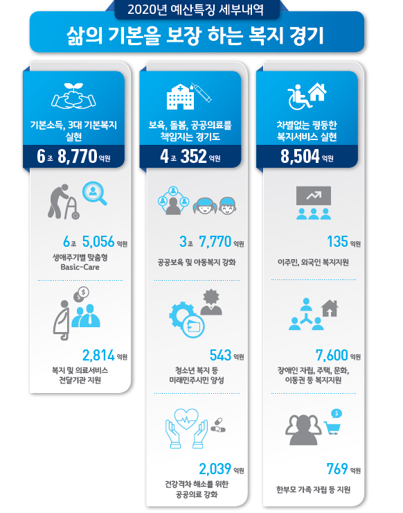이와 함께 산후조리비, 초등학생 치과주치의, 무상교복, 청년기본소득 등 민선 7기가 역점 추진하고 있는 ‘생애주기별 맞춤형 복지사업’에는 6조8770억원이 투입된다.