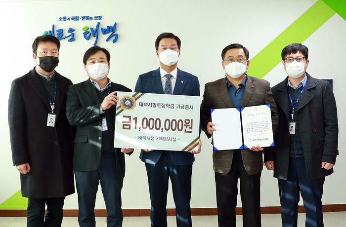 [로컬세계 박상진 기자]강원 태백시청 기획감사실은 3일 올해 정부합동평가 포상금 100만원을 향토 인재 육성을 위해 써 달라며 (재)태백시민향토장학회에 기탁했다.