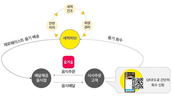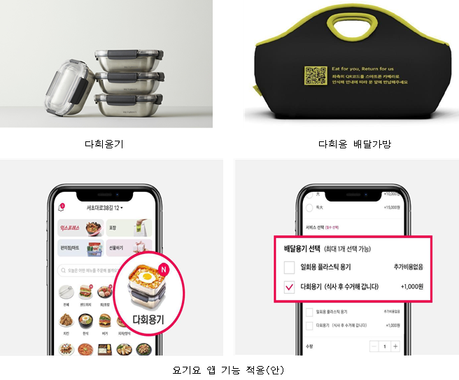 소비자는 요기요 앱을 통해 다회용기 사용 음식점을 선택해 주문할 수 있다. 주문하면 다회용기와 가방에 담긴 음식이 배달된다. 식사를 마친 뒤엔 빈 다회용기를 다시 가방에 담아 집 앞에 놓고 가방에 부착된 QR코드로 회수 신청을 하면 된다.