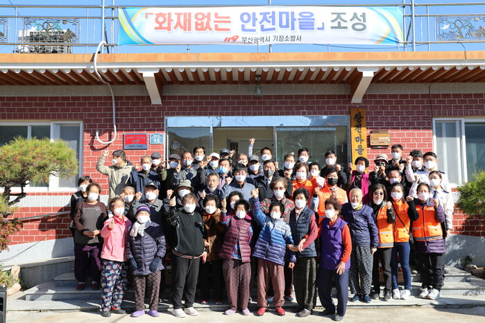 ▲부산 기장소방서는 철마면 장전마을 2022년 화재 없는 안전마을 조성 행사를 진행했다. 기장소방서 제공 |