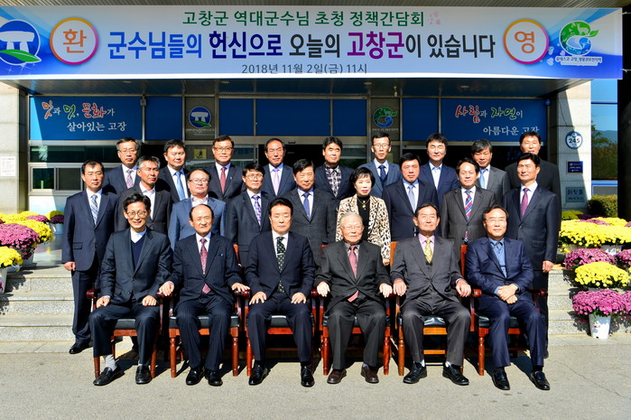 유기상 고창군수는 “고창군 발전에 누구보다 헌신하시고, 오늘날 고창군의 번영을 이루어 주신 역대 군수님들께 진심으로 감사드린다”며 “역대 군수님들께서 일궈 놓은 발전의 토대 위에 민선7기 고창군은 ‘농생명 문화 살려 다시 치솟는 한반도 첫 수도 고창’을 군정방침으로 삼고 군민과 함께 ‘자랑스런 고창만들기’를 적극 추진하고 있다”고 설명하고 정책 간담회를 통해 천하제일강산 고창군이 더 큰 발전을 이루기 위한 고견과 조언을 기대한다고 말했다.