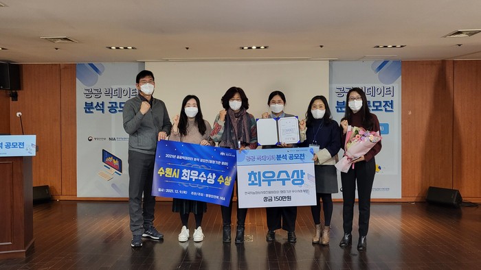 [로컬세계 김병민 기자]경기 수원시가 행정안전부와 한국지능정보화진흥원(NIA)이 주관하는 ‘2021년 공공빅데이터 공모전’에서 최우수상을 받았다. 시상식은 9일 NIA 서울청사에서 열렸다.