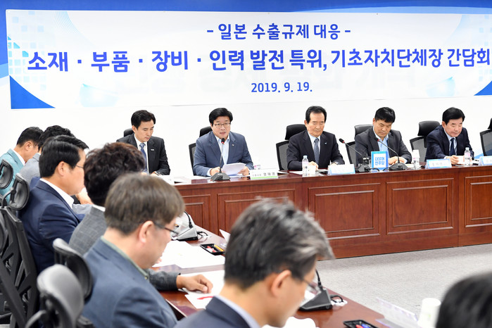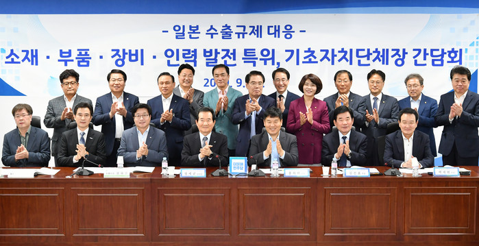 [로컬세계 고용주 기자]일본이 반도체·디스플레이 제조에 필요한 주요 소재의 수출을 규제해 관련 업체가 타격을 받는 가운데, 수원시를 비롯해 관련 사업장이 있는 8개 지자체 관계자들이 19일 국회에 모여 대응 방안을 논의했다.