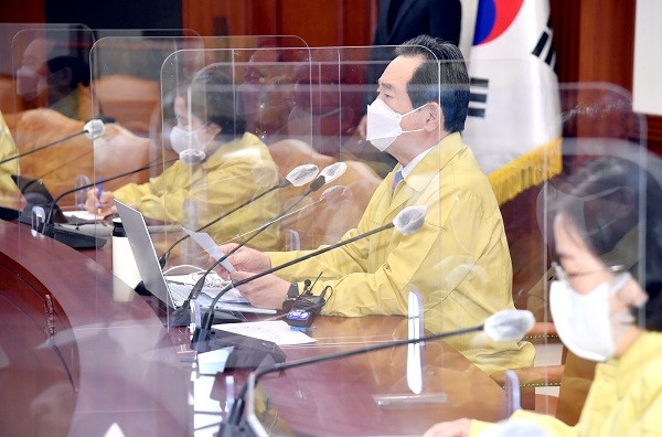 ▲정세균 국무총리가 16일 오전 서울 종로구 정부서울청사에서 열린 코로나19 대응 중앙재난안전대책본부(중대본) 회의에 참석해 발언하고 있다.(사진=국무조정실) |