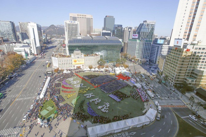 ▲19일 서울광장에서 열린 106기 9반‧11반 수료식 전경. |