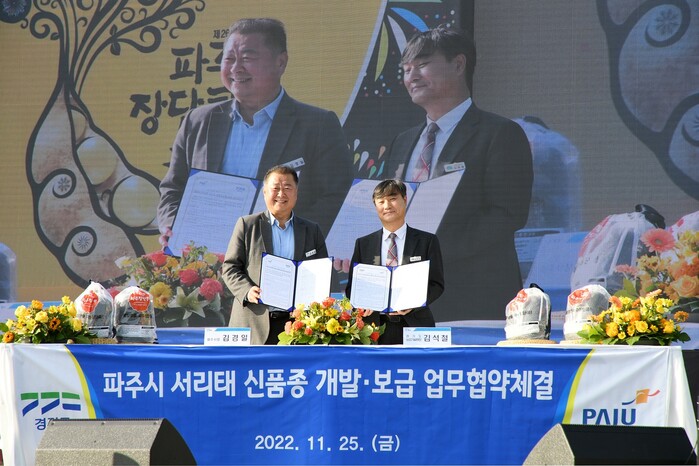 [로컬세계 = 이영원 기자]경기 파주시(시장 김경일)는 25일 파주시 장단콩 축제장인 임진각평화누리공원에서 경기도농업기술원과 파주시 서리태 신품종 개발보급을 위한 업무협약을 체결했다.