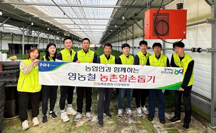 농협경제지주 소매유통부는 강원도 평창군 진부면 소재 시금치 재배 비닐하우스에서 상품화 작업과 가지 줄기 정리 등을 실시했으며, 마을회관에 공기청정기를 기증했다.