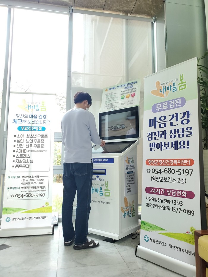 [로컬세계 이창재 기자]경북 영양군은 코로나19 장기화로 정신건강이 사회적 문제로 대두됨에 따라 군민 누구나 간편하게 정신건강검진을 받을 수 있도록 1일부터 영양군보건소 1층 민원인대기실에 무인 정신건강검진기를 운영에 들어갔다.