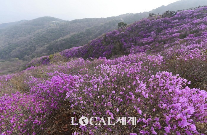 ▲강화도 고려산 능선에 활짝 핀 진달래꽃. |